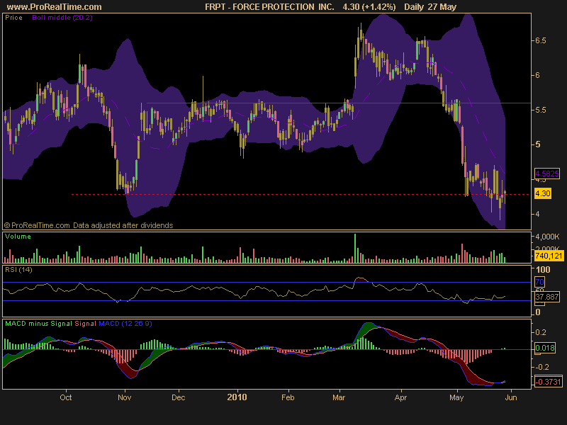 Last month, I showed a chart of the Cell Therapeutics breaking down. This is obviously an interest sensitive stock waiting for news. The stock gapped down and fell sharply last week. This move created an oversold situation that has been worked with a bounce. I note that the recent volume is decreasing, which portends weakening in the short-term bullish momentum and the trend is unlikely to continue and prices will either increase at a slower rate or start to fall. For the coming week exercise caution in buying.
