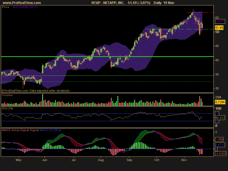 Level 3 Communications, Inc. (NASDAQ:LVLT) is in a short-term uptrend from the $.83 bottom. Technical indicators are neutral and the stock is trading between 50- and 200-day SMA currently at $.96 and $1.23, respectively. The stock needs to take out resistance at the 1.23 area to continue higher.