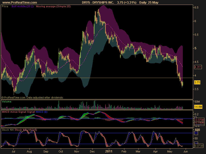 Tellabs, Inc. (NASDAQ:TLAB) was one of the stronger stocks today bouncing off support. Formed a nice bullish engulfing pattern and volume was above average on the day, which is bullish. The technical chart also shows that stochastics are turning back up from an oversold condition indicating a rally could be on the horizon. A close above the 20 day average which resides at $4.80 will re-establish the short-term bullish posture of the stock with $5.01 as the next upside objective. If I was short I would be nervous about it failing to breakdown. Move TLAB to your watch list.