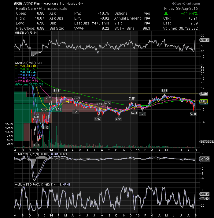The area comprehended between $9.8 and $10 represents a heavy resistance for shares of Ariad Pharmaceuticals, Inc. (NASDAQ:ARIA). A close above this key resistance area would have positive implications and could drive the stock much higher. Keep the stock on your radar.
