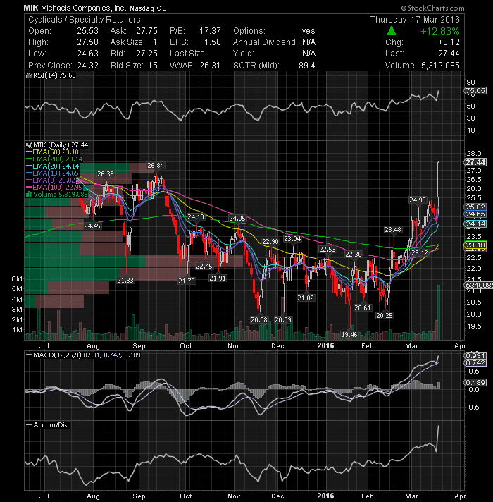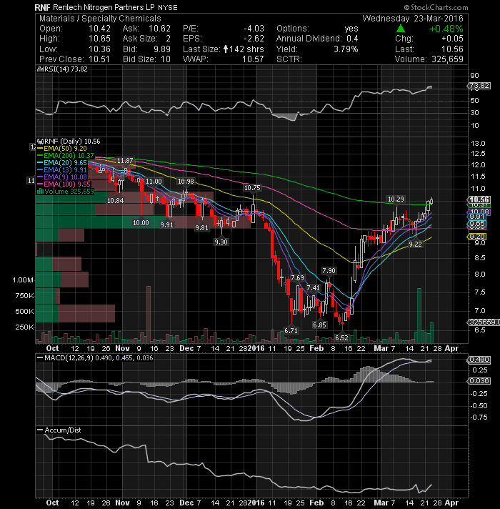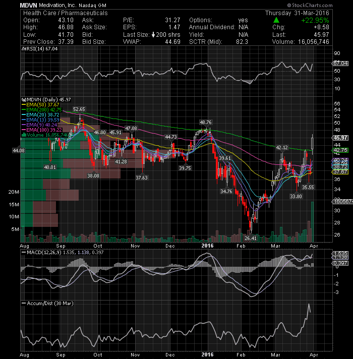 Relypsa Inc (NASDAQ:RLYP) gained 7.34% to 95 cents per share after Brean Capital analyst Difei Yang has started coverage with a Buy rating and $26 PT, which represent a potential upside of 80% from current levels. From a technical standpoint, the stock broke the downtrend line from the December highs on relative high volume and could eventually rally up to test its 50-day EMA in the next sessions. In addition, MACD indicates positive momentum, while RSI is also gaining strength. With a 40% of float short, the stock looks poised to post more gains heading into the weekend. Keep it on your watch list.