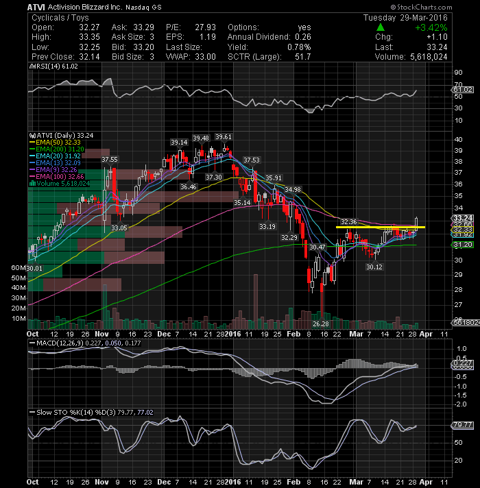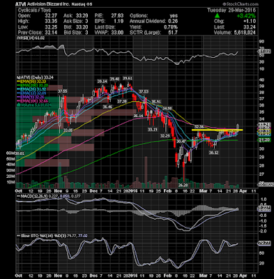 Activision Blizzard, Inc. (NASDAQ:ATVI) cleared resistance on expanding volume and looks ready to extend its gains. Keep on watch list.
