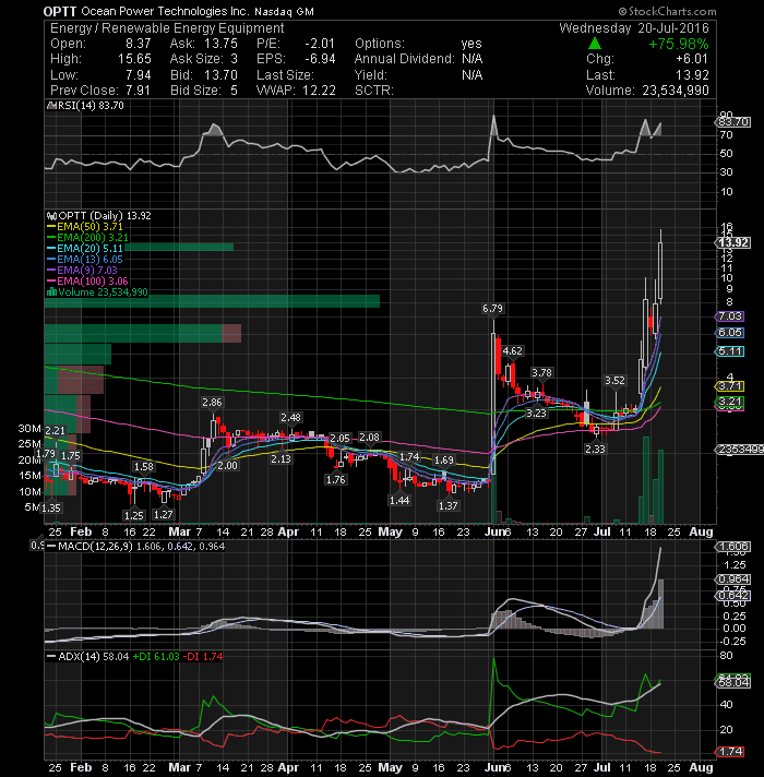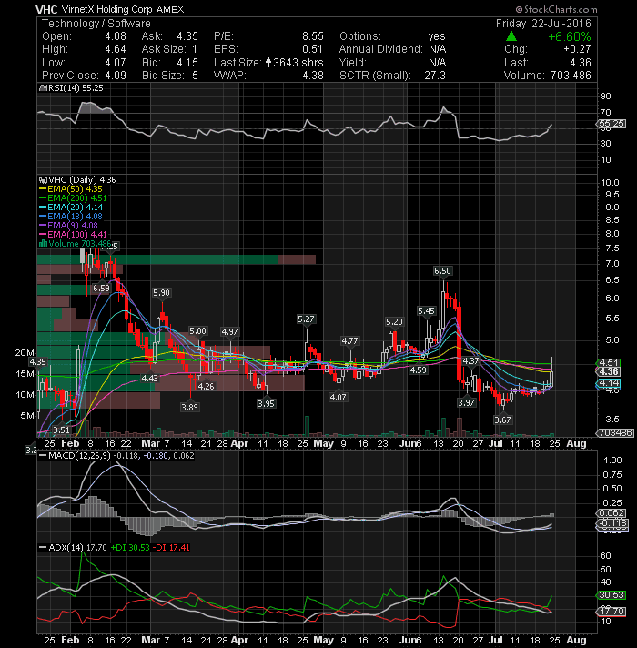 aTyr Pharma Inc (NASDAQ:LIFE) which broke out of a falling wedge on Wednesday and consolidated Thursday, continued to move higher Friday on heavy volume closing the session above the important price level of 3.39. This could push the stock above its next resistance level in the 4 area towards the 4.05-4.35 trading range in the next couple of trading days. This technical set-up appears to be near perfect to deliver good gains. The ADX value is increasing and above the 30 level and +DI is above the –DI indicating development of strong up trend. The MACD indicator is also above its signal line indicating further strength may be possible.