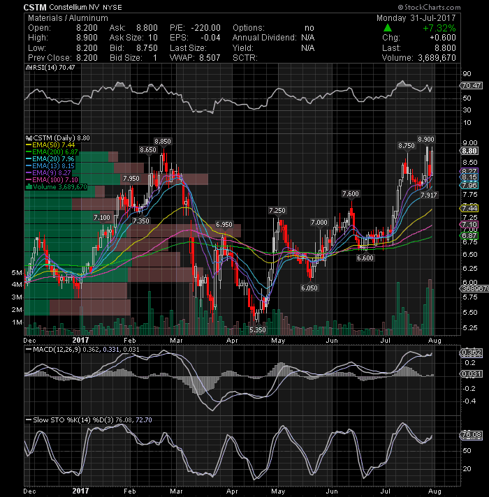 Monro Muffler Brake Inc (NASDAQ:MNRO) is bullish with a lot of daily technical indicators showing up. The slope of the recent upward move is steep accompanied by increasing volume. This momentum could push this stock much higher from here, so keep the stock on your radar next week. The stock is now testing the next resistance area around its 100-day EMA, wait for it to clear on heavy volume and go long.