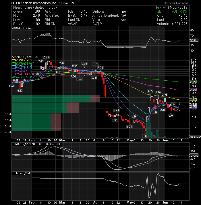 Outlook Therapeutics Inc (NASDAQ: OTLK) closed Friday with a nice big bullish engulfing candle on decent volume, looking good to go higher. Long over 2.49