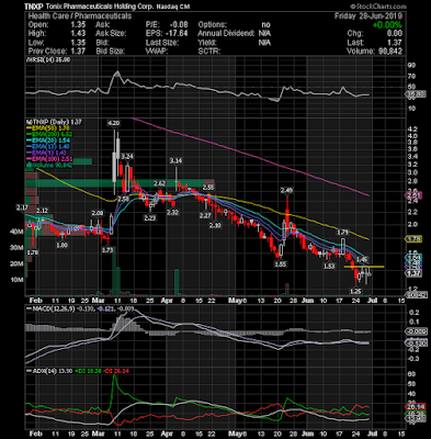 I've been stating for days that the Tonix Pharmaceuticals Holding Corp (NASDAQ: TNXP) is trying to bottom. The stock remains deeply undervalued based on fundamentals with nearly $2.5 per share in cash and equivalents and has lots of upside potential. If it breaks the 1.45 level, the momentum could move stock up to the $1.78 area where the 50-day EMA is located.
