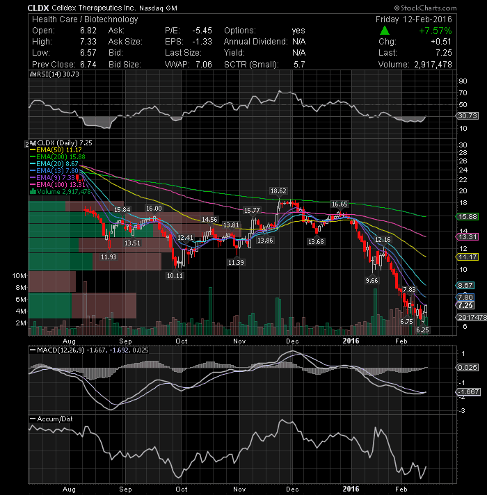 Celldex Therapeutics, Inc. (NASDAQ:CLDX) was on my bottom scan at $6.50 and hit a high of $7.33 Friday. A good example of why bottom plays can be very lucrative if you buy in at the right time. The short-term technical structure suggests continued bullish momentum. My initial target is under $7.80 and a stop-loss should be considered at $6.96.