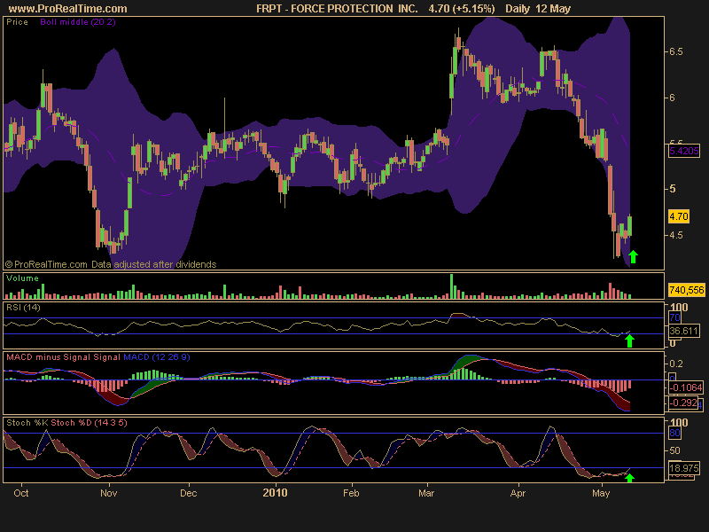 One stock to watch tomorrow is FRPT. The technical chart is showing a double bottom. Look for a run higher from here. Trading at a PE of around 13 looks like a good bet at these levels. In addition K line has just crossed on top over D line showing strong buy signal as ROC is at oversold level. According to the recent balance sheet the company still has enough cash so this should be a relatively save risk.