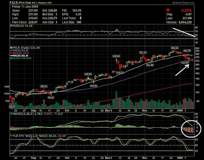 There is no doubt the solar stocks are hot. Solar stocks had a huge run up in 2007, but 2008 could be a different year for some of them, we may see some price stabilization or some profit taking, but honestly is too early to predict some possible scenario, it will depend of many factors, and one of them is the current speculative high price of Oil. Even after 2007 phenomenal stock price increase, Investors interest in solar-sector stocks continues to rise, this sector continue under the attention of many players on the market. I have been watching the solar sector for a while now and honestly I’m now more cautions than I was before, concerning the current instability in the general markets, that for sure should contaminate also this sector. Anyway, this is the sector of the future, from now on greens energy’s will be always on focus. I am going to publish below several charts and some comments of some of the big players of this sector.