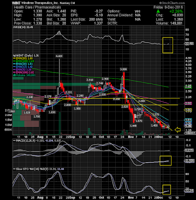 Opexa Therapeutics Inc (NASDAQ:OPXA) ended the week with a bang on Friday. The stock exploded from a low of 91c to a high of $1.48 for a nice intraday move of 60% and traded a record-breaking volume of $10.2 Million. Congratulations to all my readers and twitter followers that played Thursday's alert and pocketed some nice gains. For those of you that will be celebrating this weekend, I would like to present this chart of another low float stock that could see a nice bounce in the week ahead. Windtree Therapeutics Inc (NASDAQ:WINT) has given a trend line breakout on daily on closing basis, which confirms the bull trend in the short-term heading for immediate target of 2.02-2.17 levels. Oscillators like Slow Sto, MACD and RSI too supports bullish momentum.