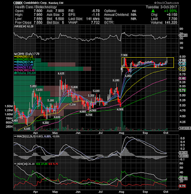 CombiMatrix Corp (NASDAQ:CBMX) Watch this bull consolidation. Keep an eye for a possible breakout over 7.95.